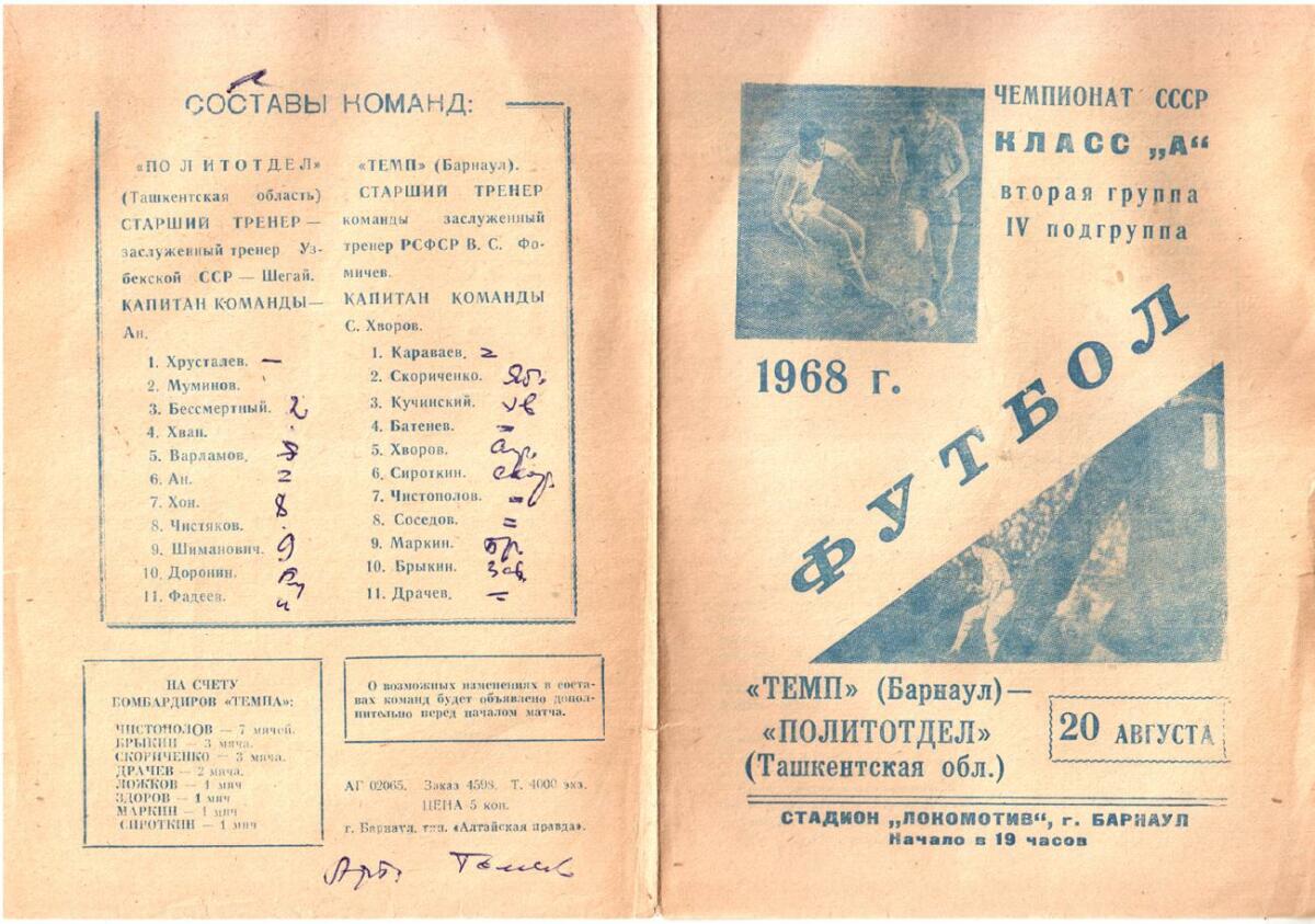 «Темп» Барнаул - «Политотдел» Ташкентская обл. - 1:0