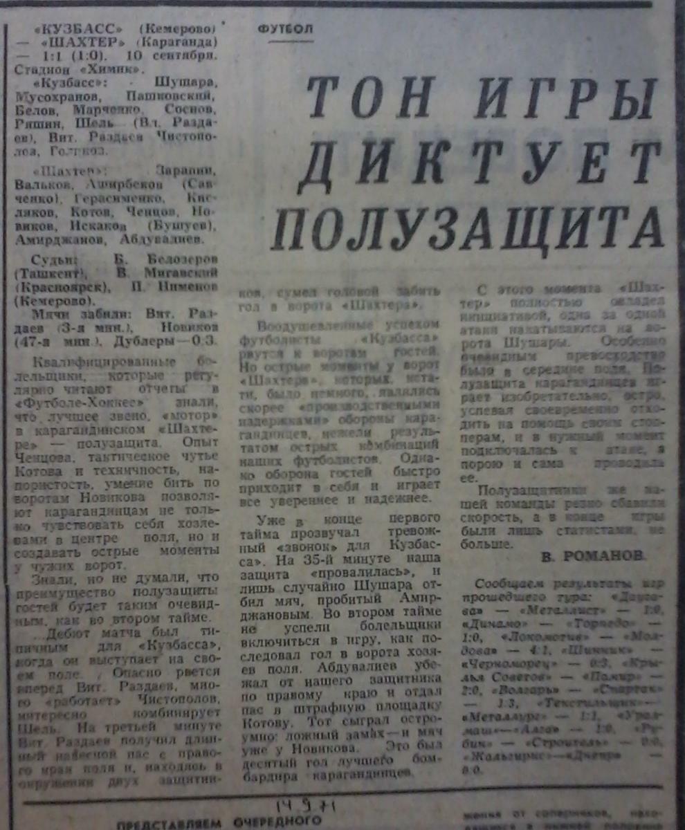 Чемпионат СССР 1971. Первая лига (D2)