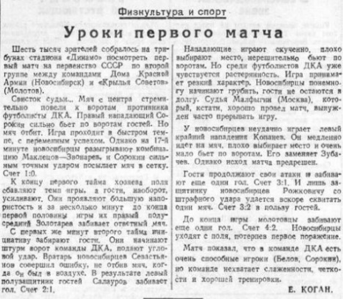 ДО Новосибирск - «Крылья Советов» Молотов - 2:4