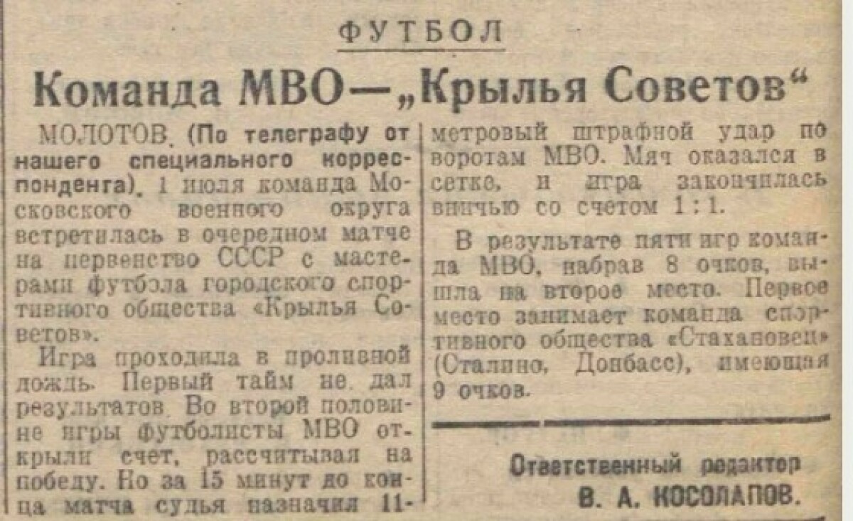 «Крылья Советов» Молотов - МВО Москва - 1:1