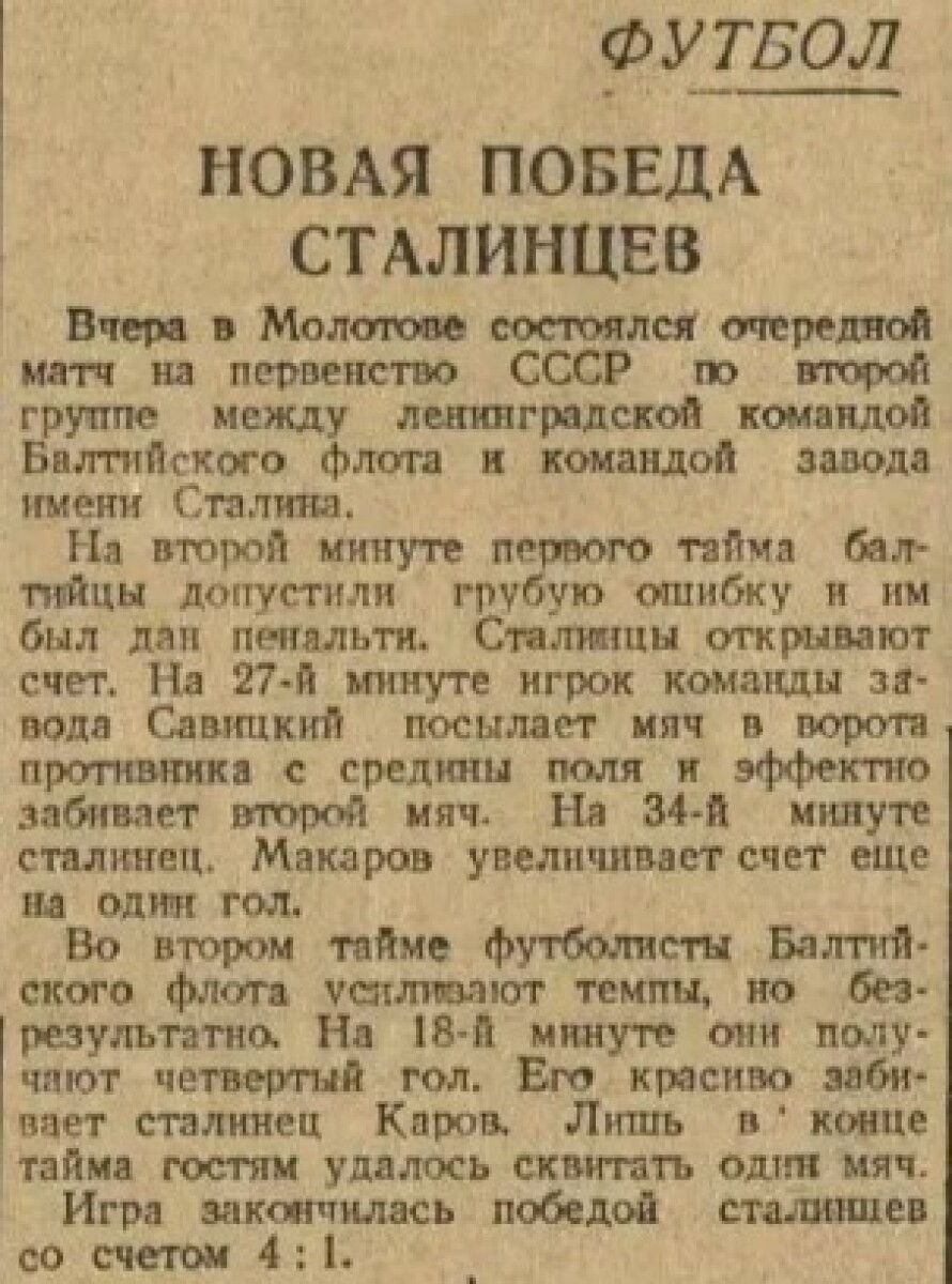 «Крылья Советов» Молотов - КБФ Ленинград - 4:1