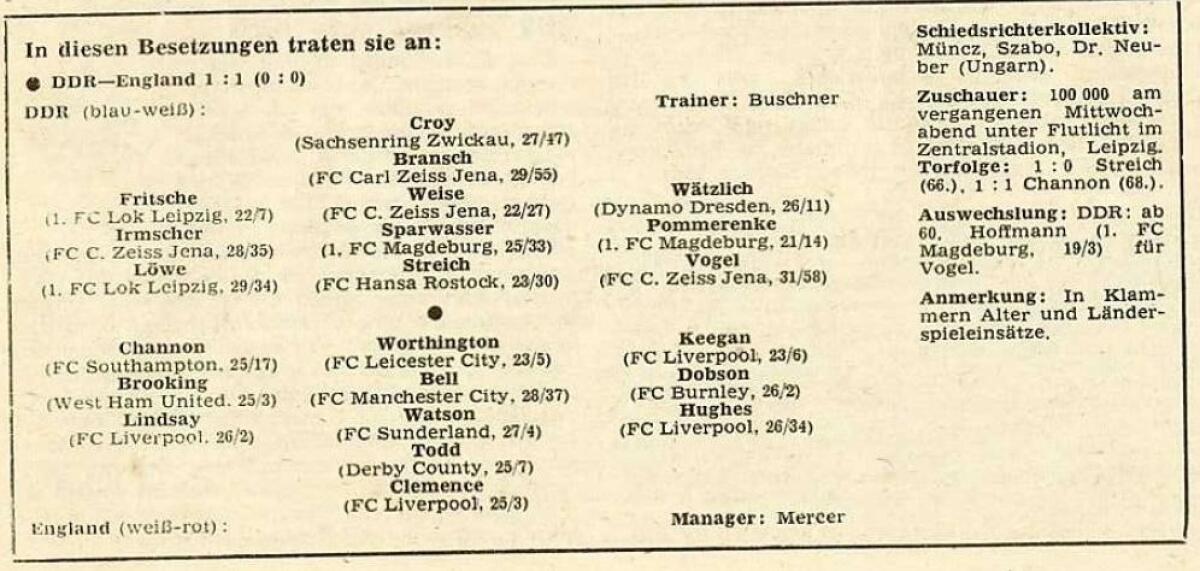 ГДР - Англия - 1:1