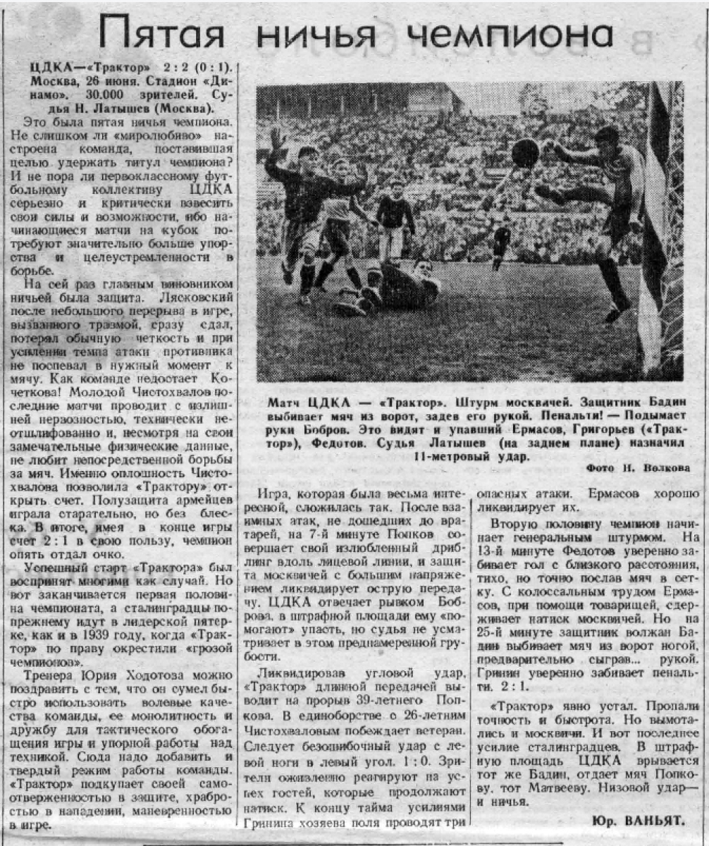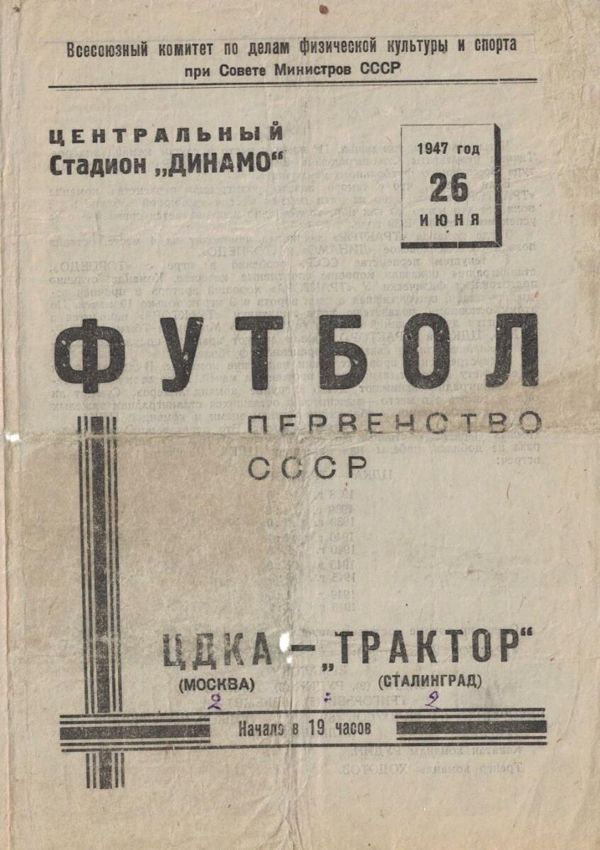 ЦДКА Москва - «Трактор» Сталинград - 2:2