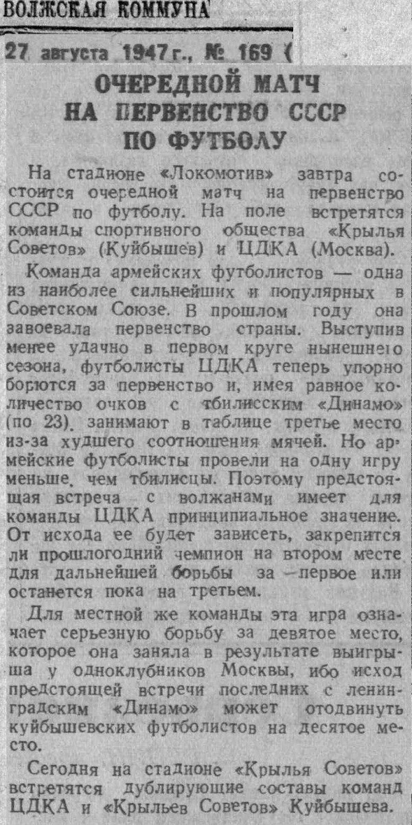 «Крылья Советов» Куйбышев - ЦДКА Москва - 1:2