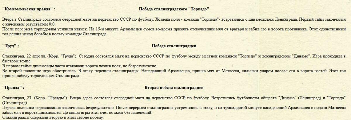 «Торпедо» Сталинград - «Динамо» Ленинград - 1:0