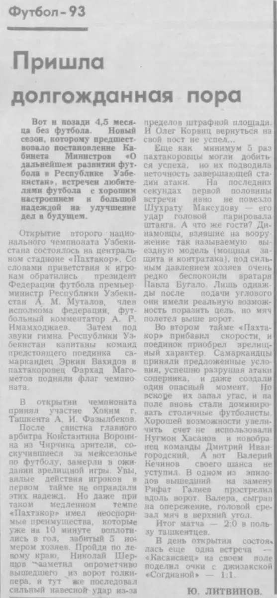 «Пахтакор» Ташкент - «Динамо» Самарканд - 2:0