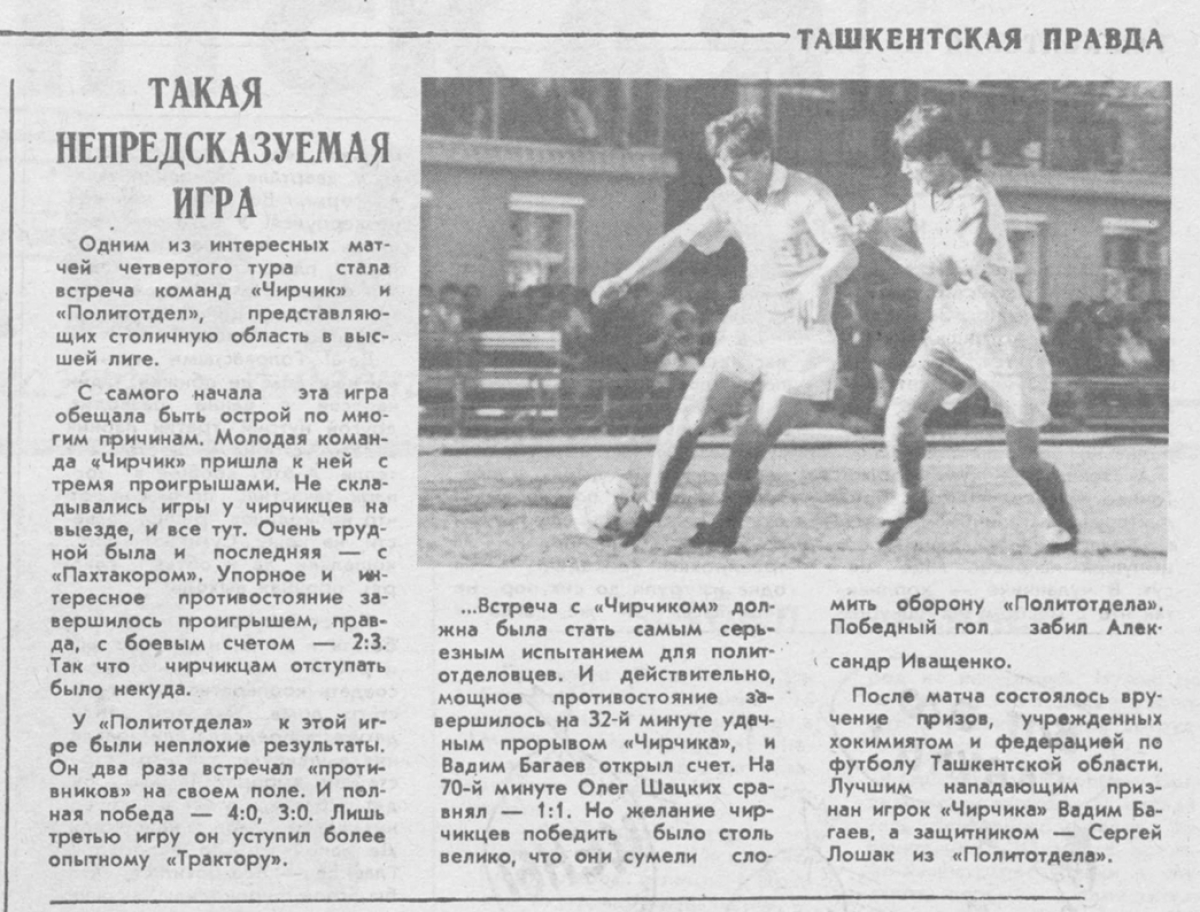 «Чирчик» Чирчик - «Политотдел» Ташкентская обл. - 2:1