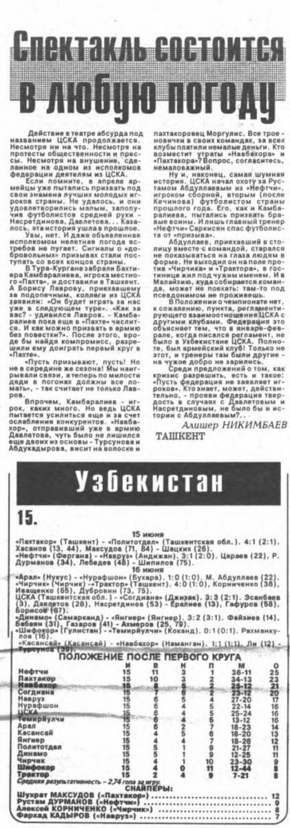 «Пахтакор» Ташкент - «Политотдел» Ташкентская обл. - 4:1