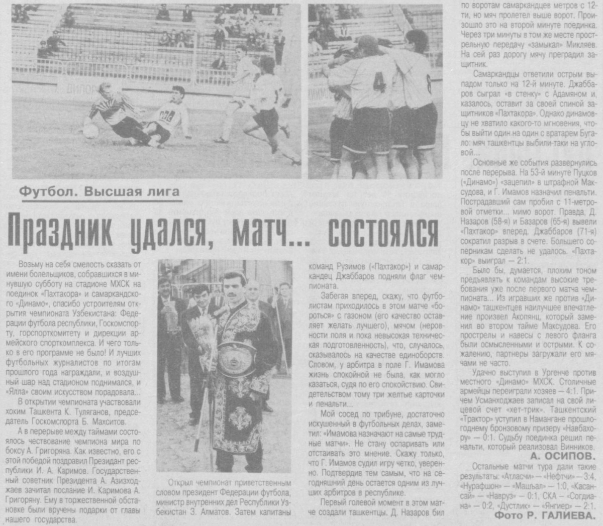 «Пахтакор» Ташкент - «Динамо» Самарканд - 2:1