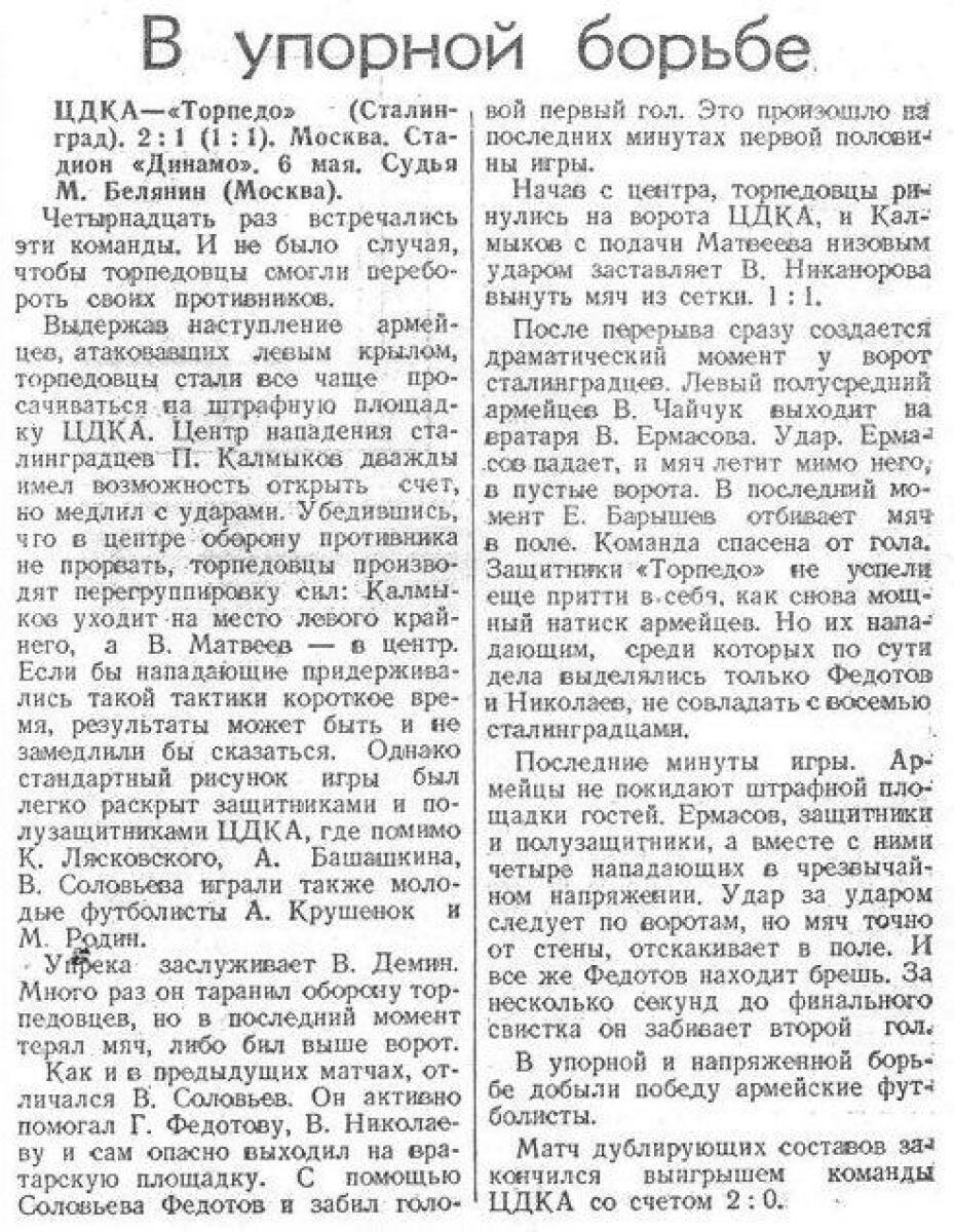 ЦДКА Москва - «Торпедо» Сталинград - 2:1