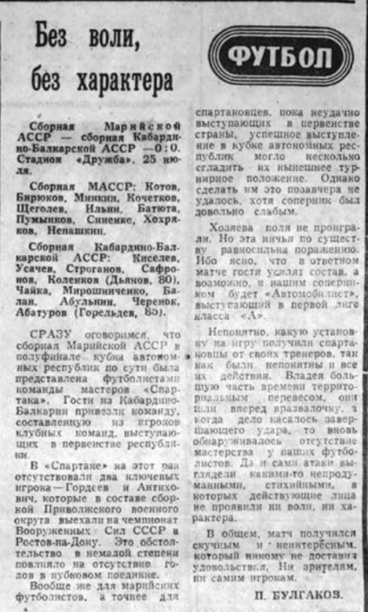 Марийская АССР - Кабардино-Балкарская АССР - 0:0