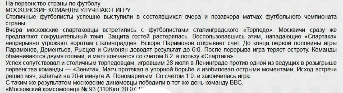 «Спартак» Москва - «Торпедо» Сталинград - 8:2