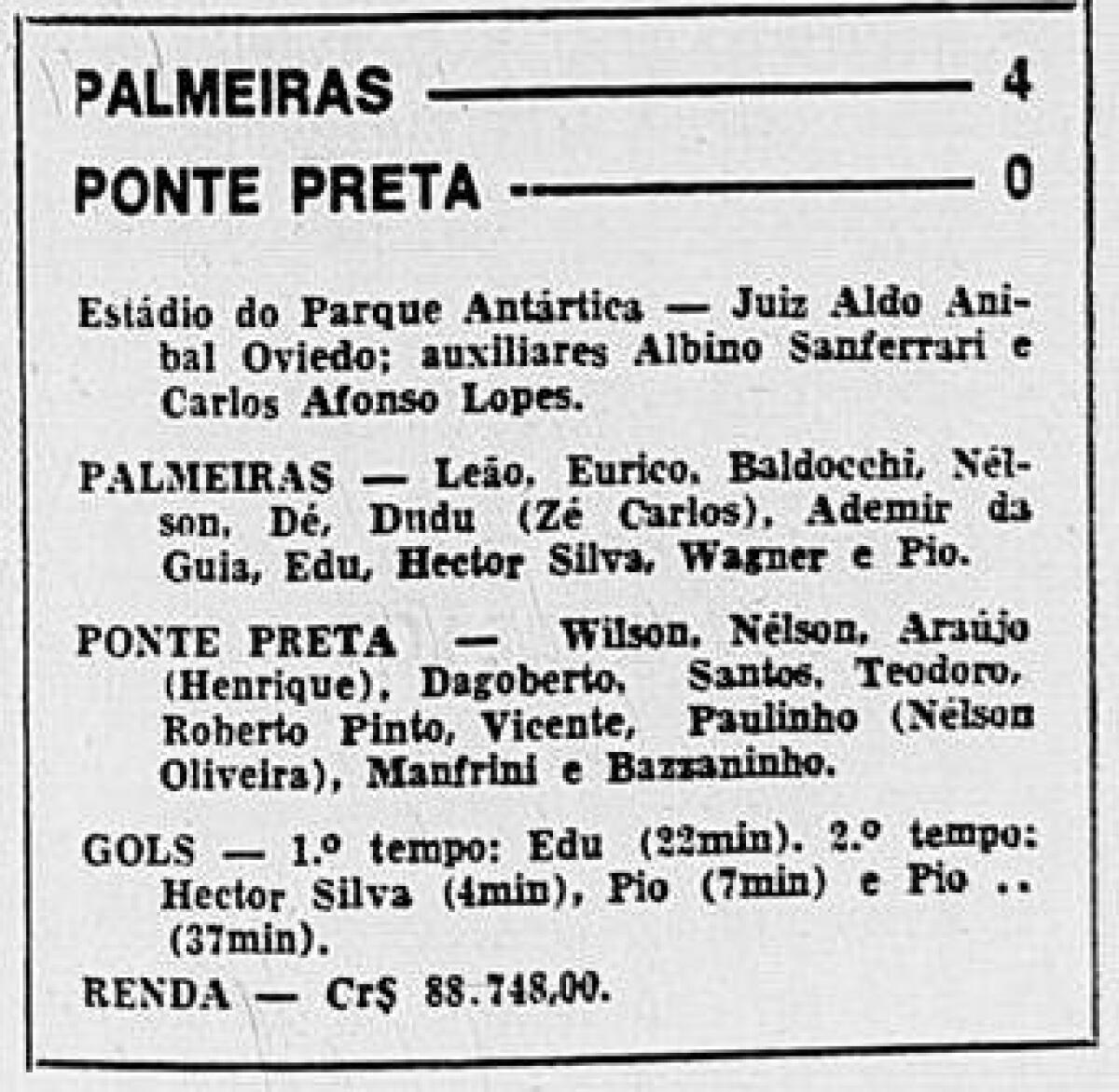 «Палмейрас» Сан-Паулу - «Понте-Прета» Кампинас - 4:0