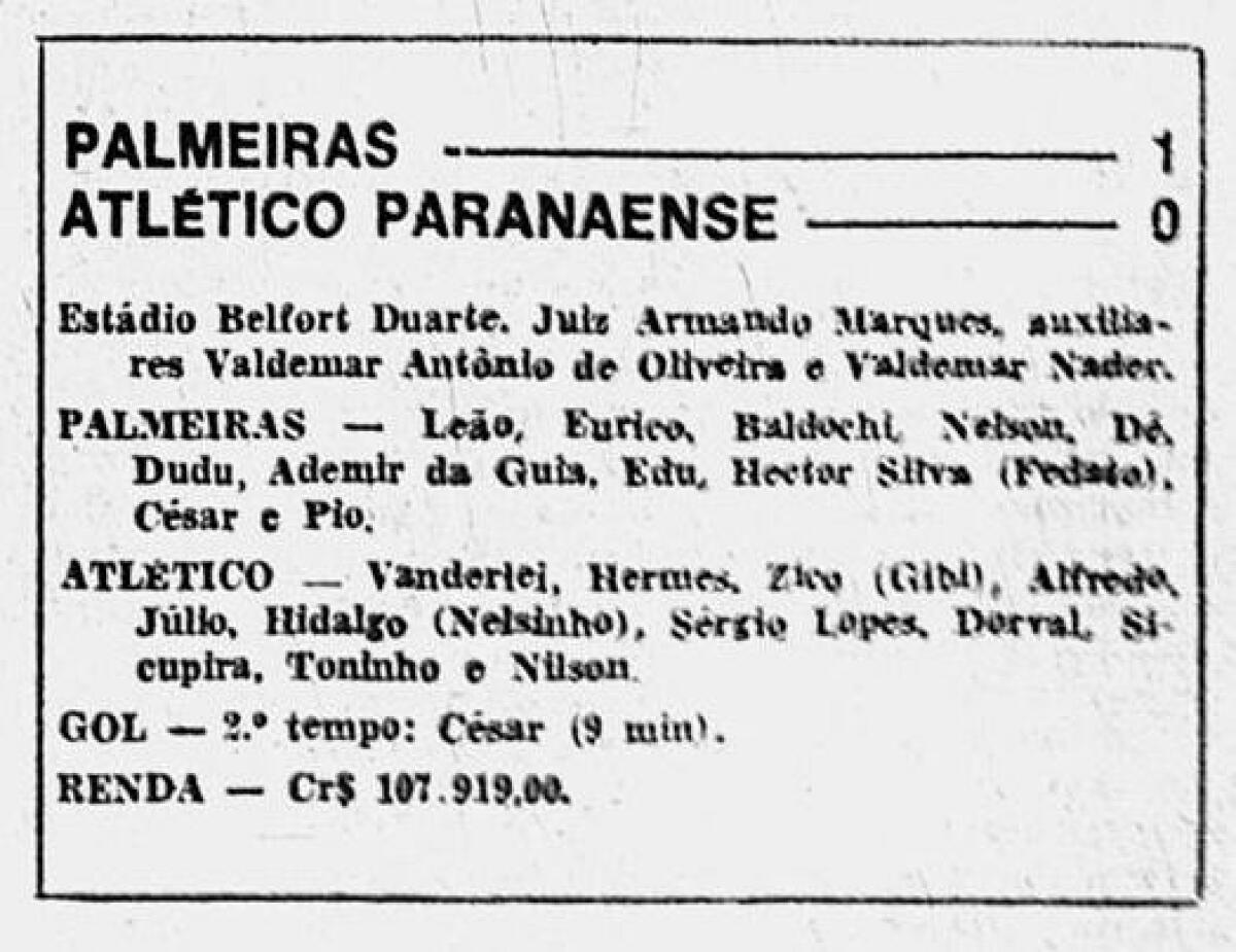 «Атлетико Паранаэнсе» Куритиба - «Палмейрас» Сан-Паулу - 0:1