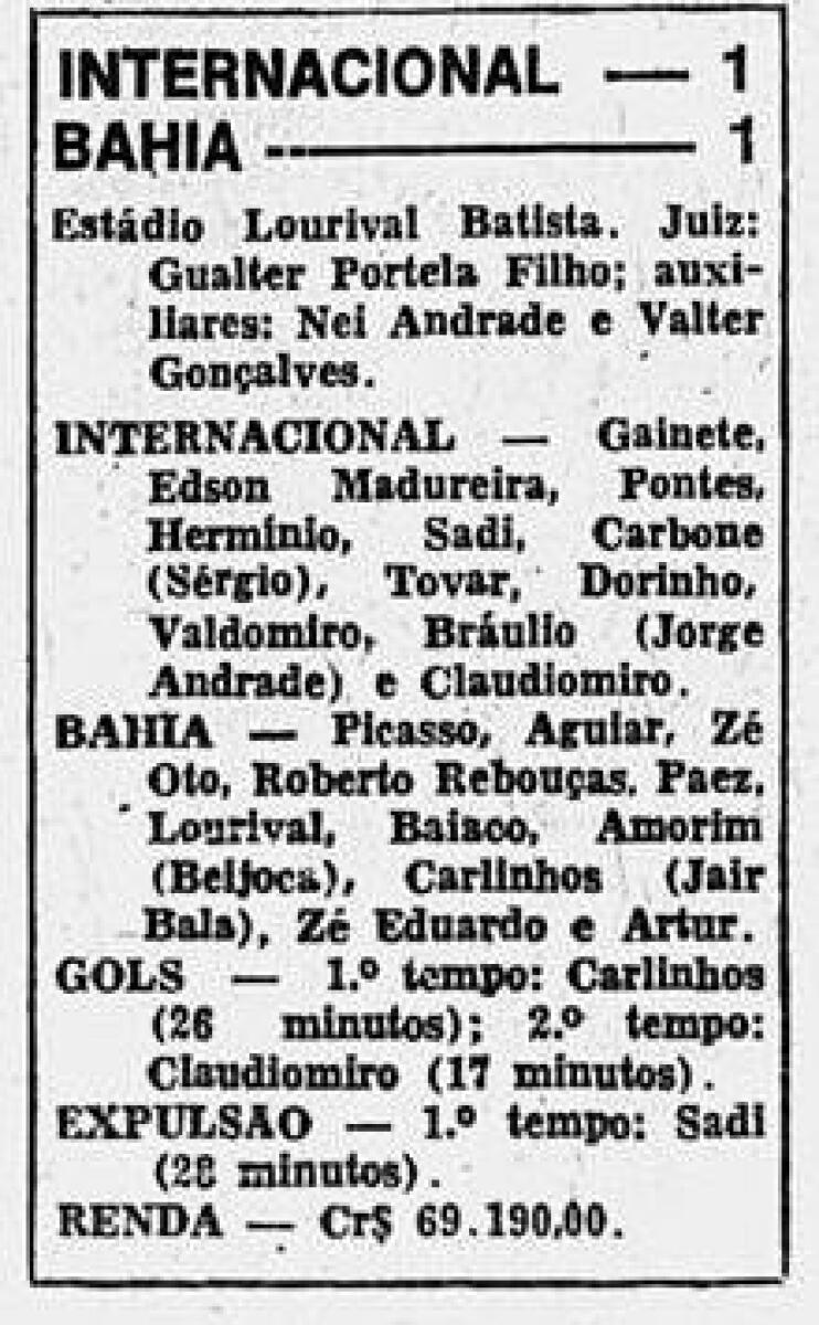 «Баия» Салвадор - «Интернасьонал» Порту-Алегри - 1:1