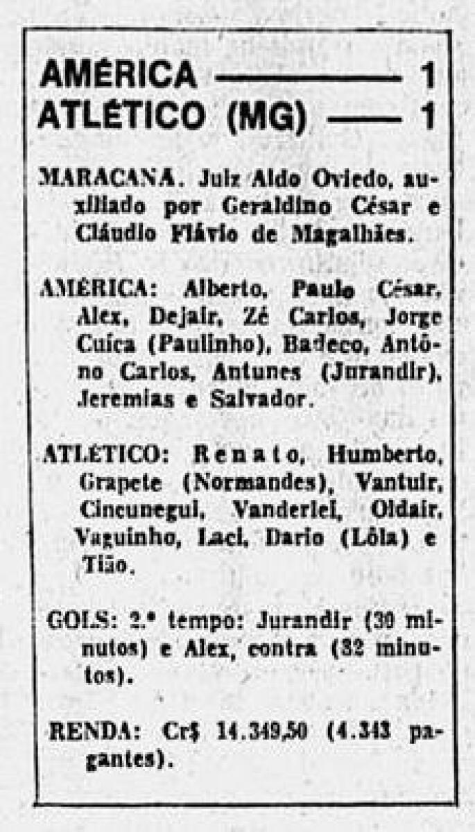 «Америка» Рио-де-Жанейро - «Атлетико Минейро» Белу-Оризонти - 1:1