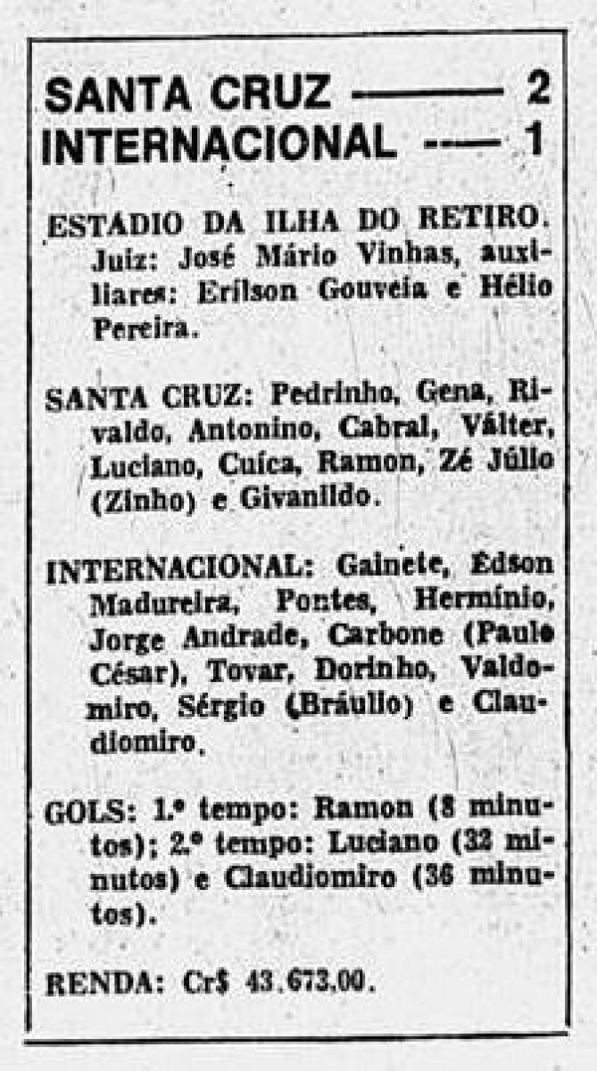 «Санта-Круз» Ресифи - «Интернасьонал» Порту-Алегри - 2:1