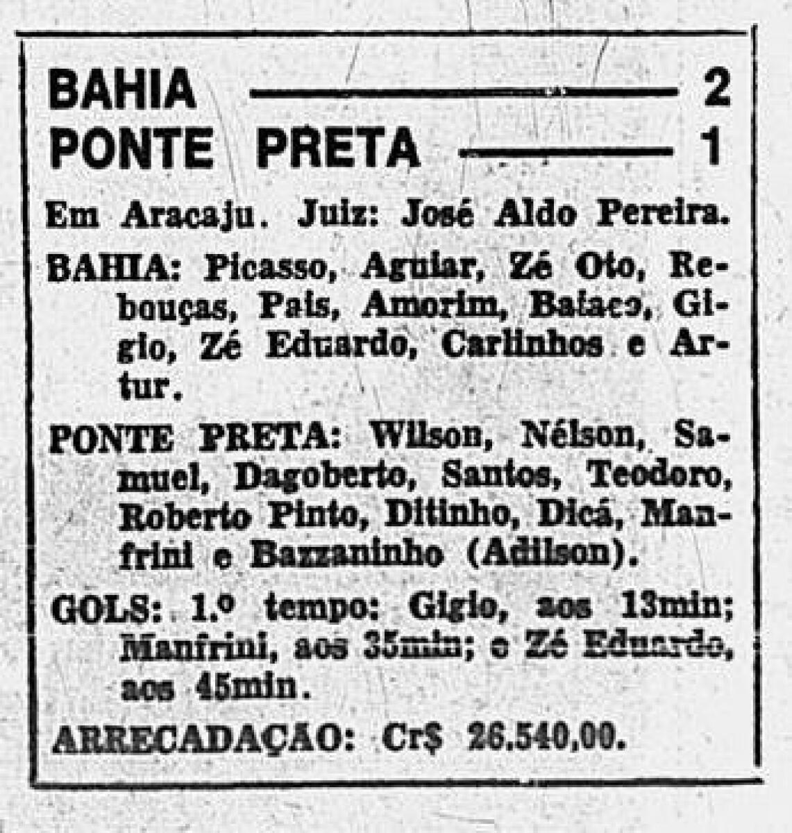«Баия» Салвадор - «Понте-Прета» Кампинас - 2:1