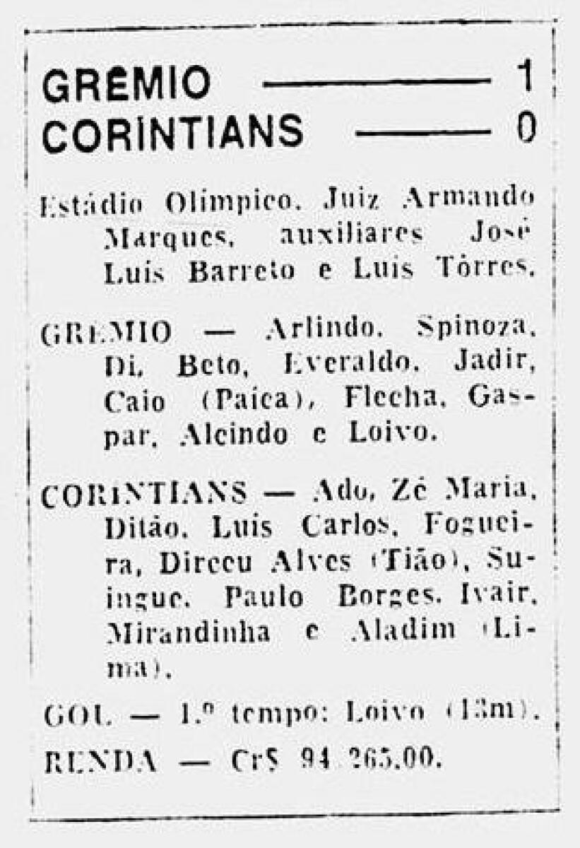 «Гремио» Порту-Алегри - «Коринтианс» Сан-Паулу - 1:0