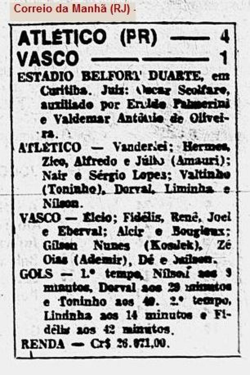 «Атлетико Паранаэнсе» Куритиба - «Васку-да-Гама» Рио-де-Жанейро - 4:1