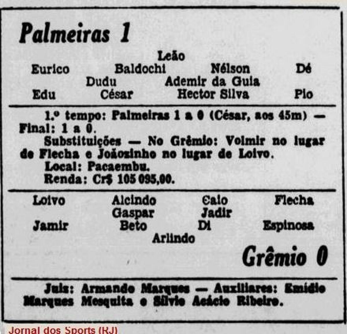 «Палмейрас» Сан-Паулу - «Гремио» Порту-Алегри - 1:0