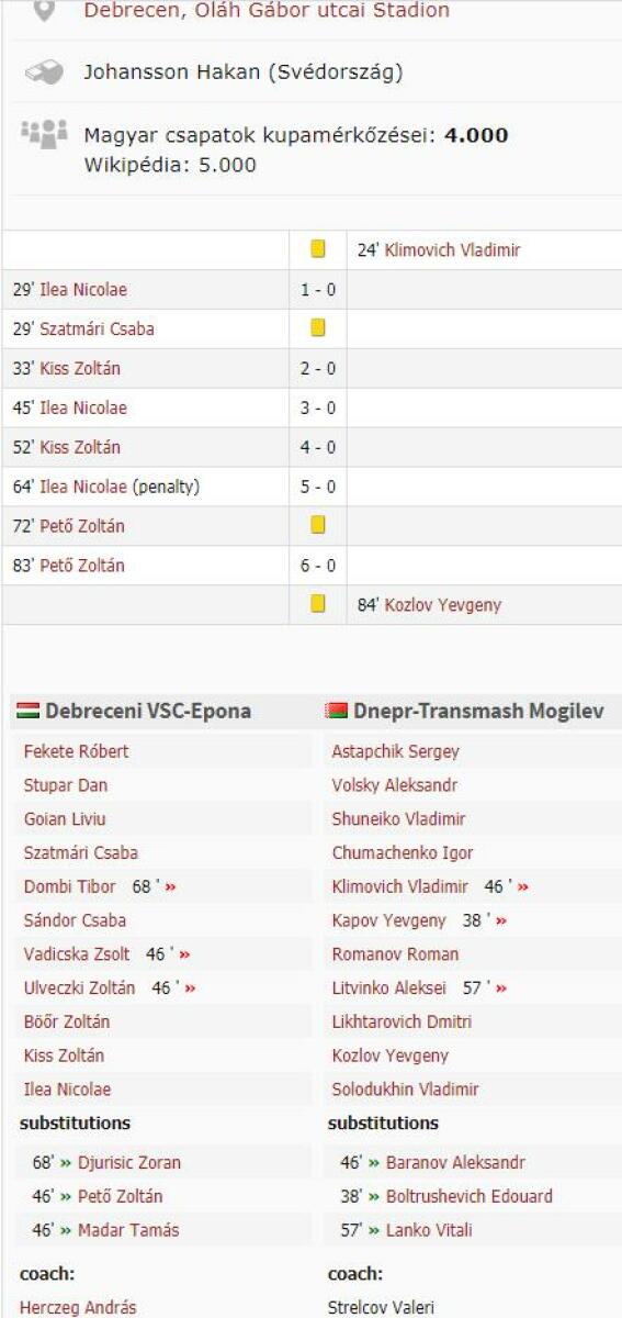 «ДВШК-Епона» Дебрецен - «Днепр-Трансмаш» Могилёв - 6:0