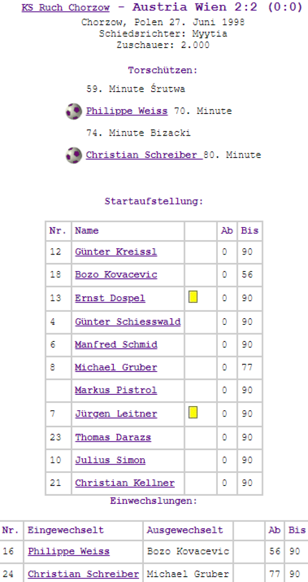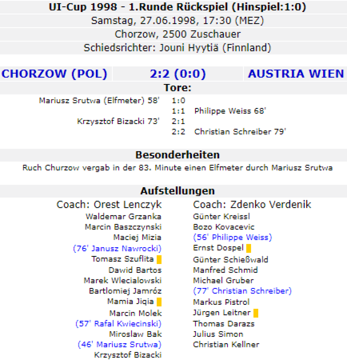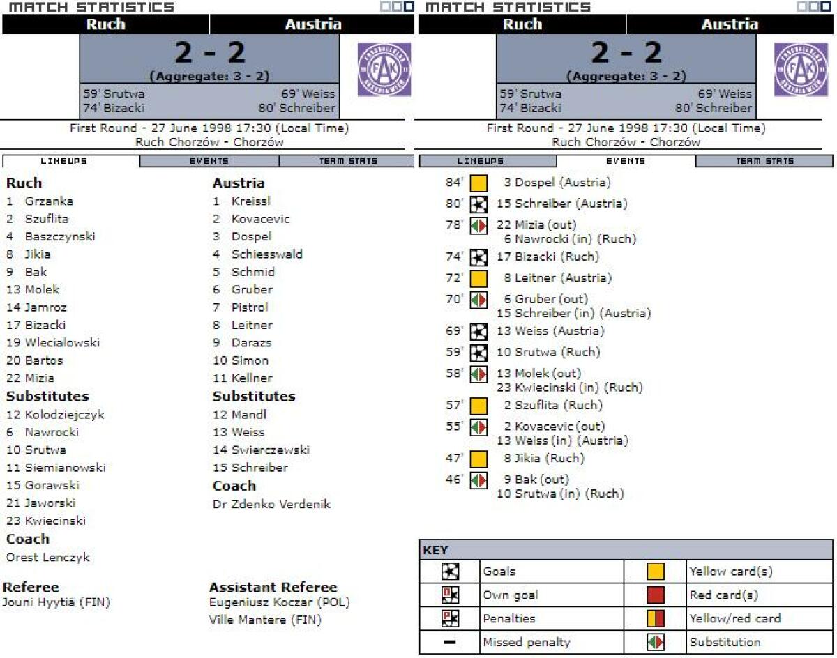 «Рух» Хожув - «Аустрия-Мемфис» Вена - 2:2