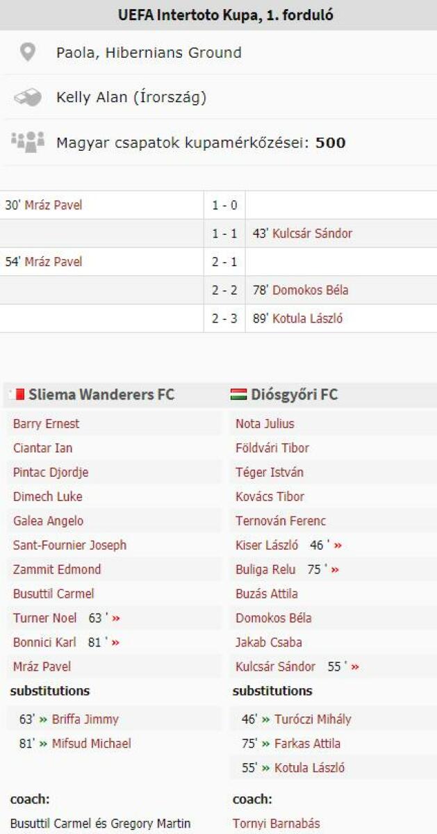 «Слима Уондерерс» Слима - «Диошдьёр ФК» Мишкольц - 2:3
