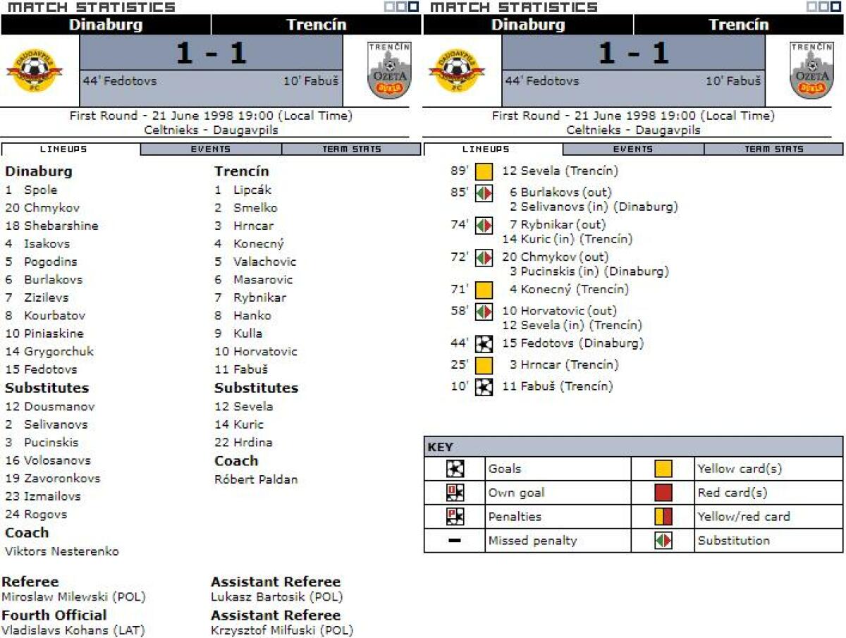 «Динабург» Даугавпилс - «Озета Дукла» Тренчин - 1:1