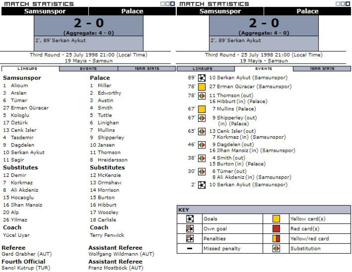 «Самсунспор» Самсун - «Кристал Пэлас» Лондон - 2:0