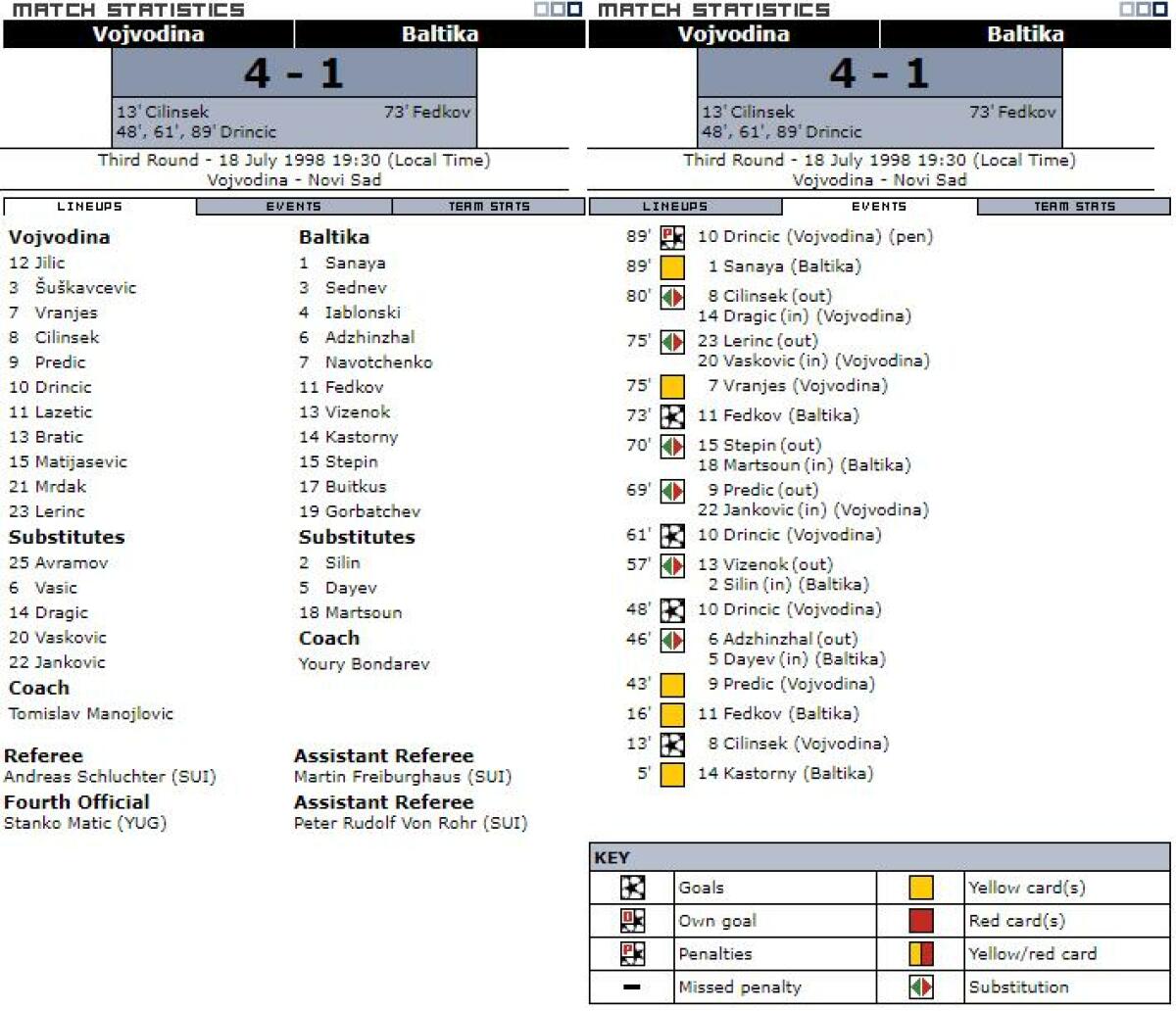 «Войводина» Нови-Сад - «Балтика» Калининград - 4:1