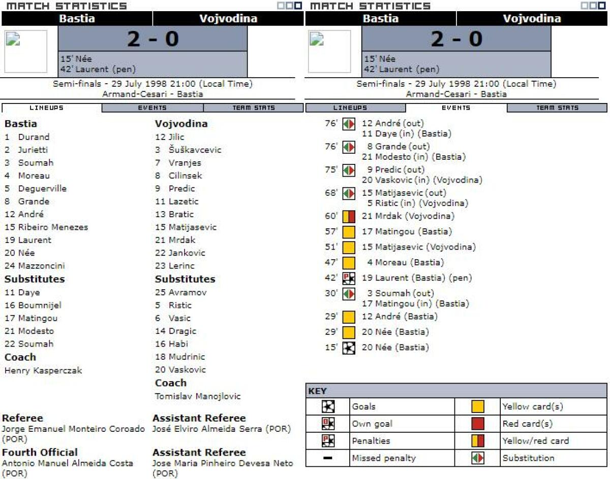 «Спортинг Бастия» Бастия - «Войводина» Нови-Сад - 2:0