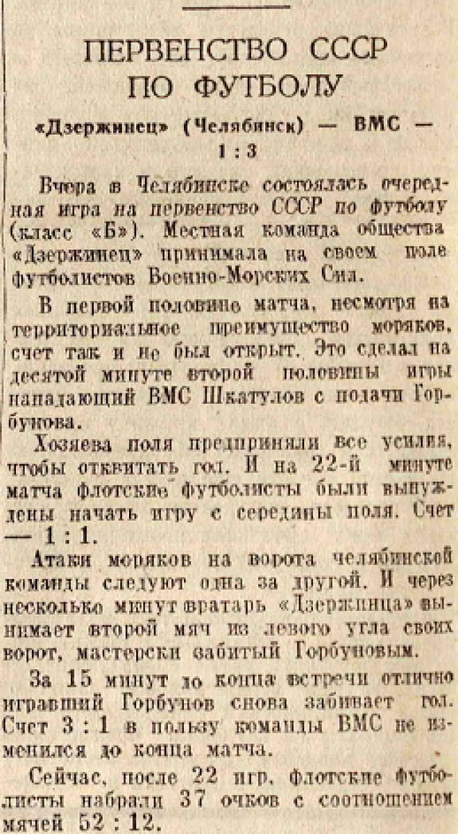 «Дзержинец» Челябинск - ВМС Москва - 1:3