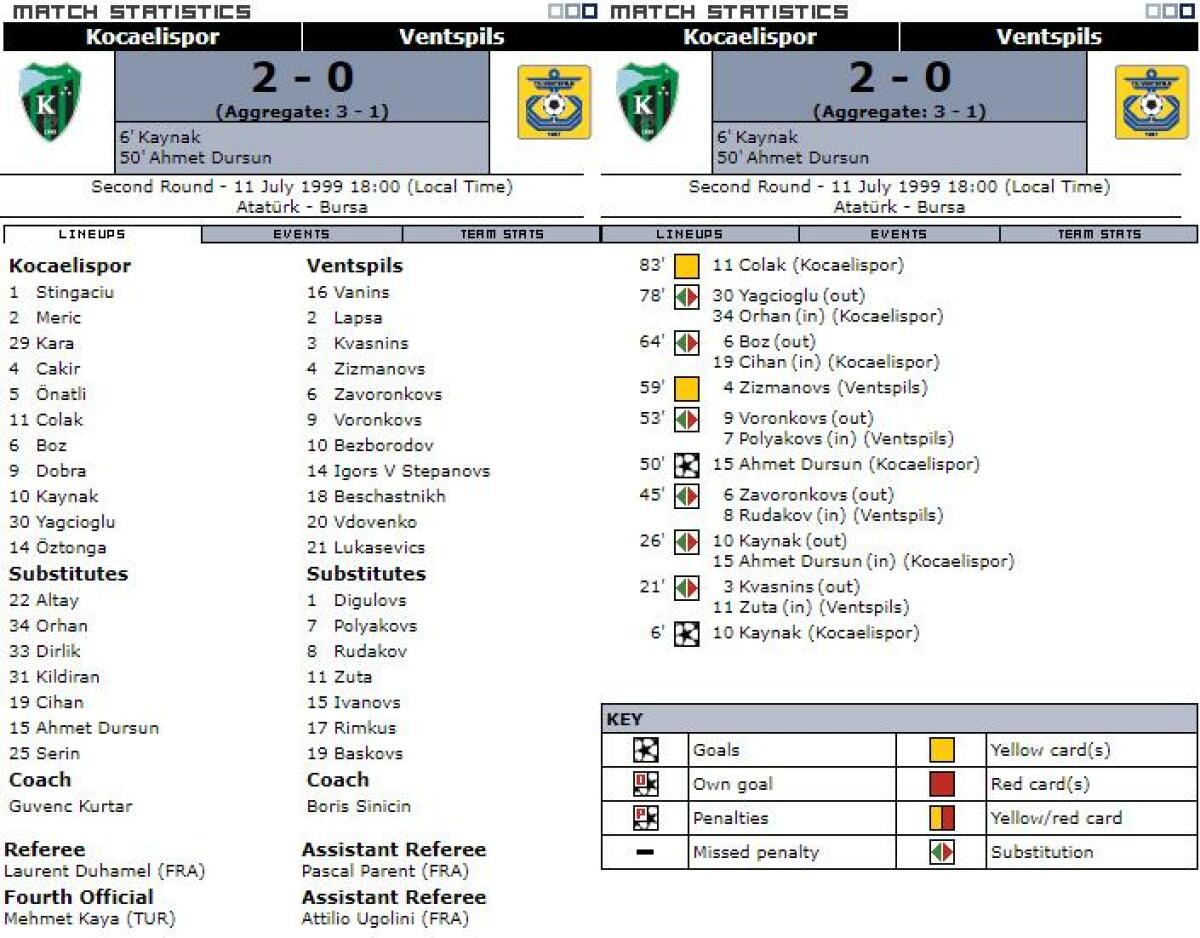 «Коджаэлиспор» Измит - «Вентспилс» Вентспилс - 2:0