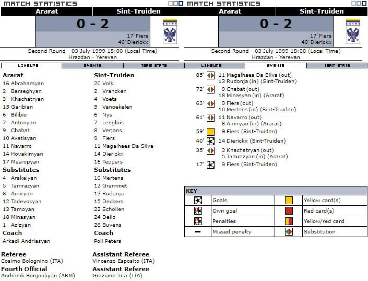 «Арарат» Ереван - «Синт-Трёйден» Синт-Трёйден - 0:2