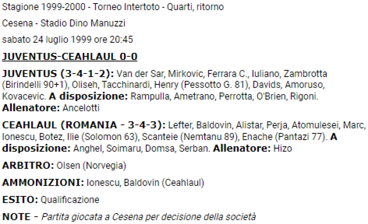 «Ювентус» Турин - «Чахлэул» Пьятра-Нямц - 0:0