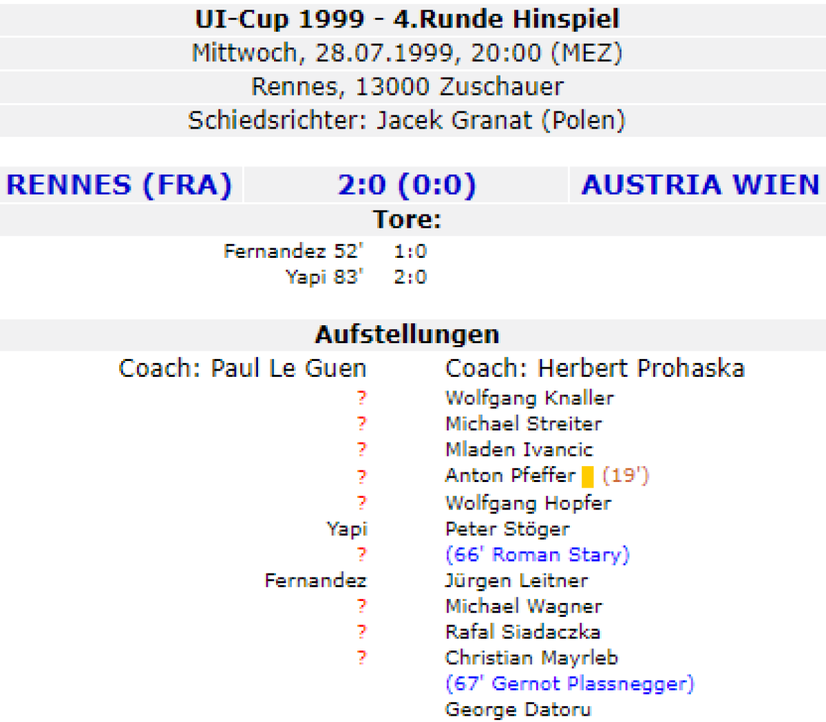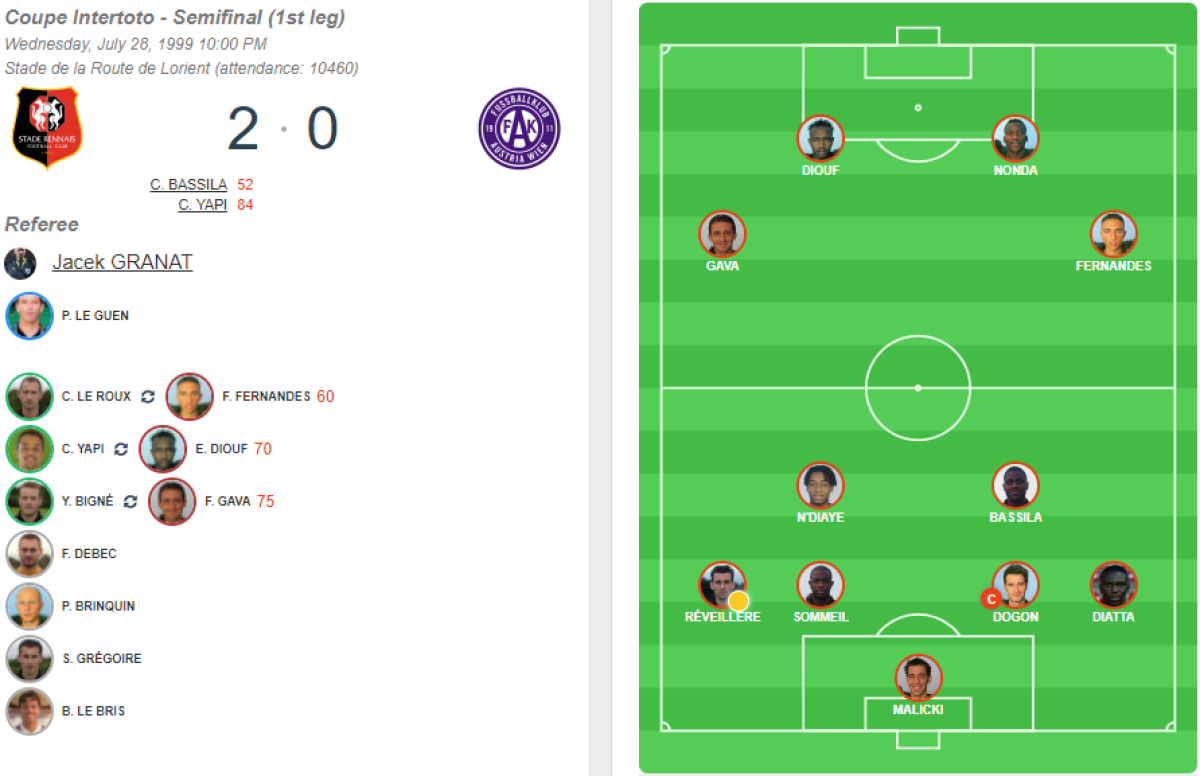 «Стад Ренн» Ренн - «Аустрия-Мемфис-Магна» Вена - 2:0