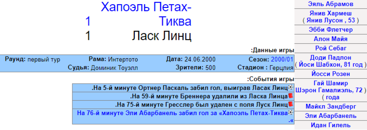 «Хапоэль» Петах-Тиква - ЛАСК Линц - 1:1