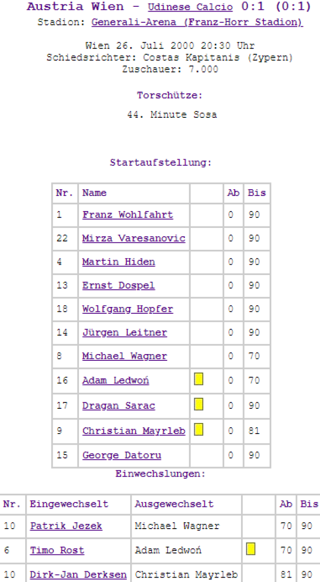 «Аустрия-Мемфис-Магна» Вена - «Удинезе» Удине - 0:1