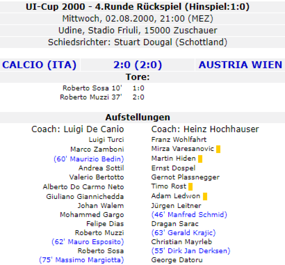 «Удинезе» Удине - «Аустрия-Мемфис-Магна» Вена - 2:0