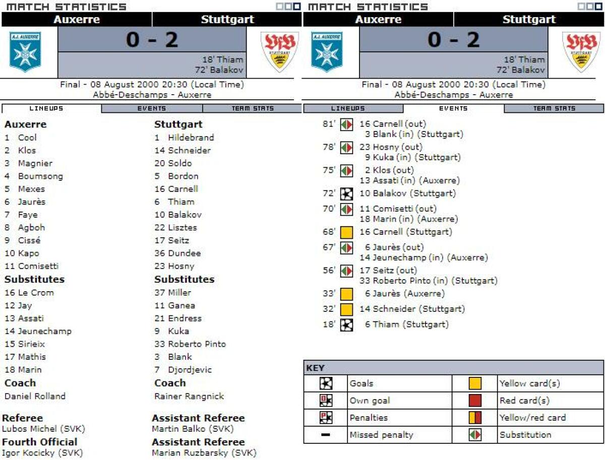 «Осер» Осер - «Штутгарт-1893» Штутгарт - 0:2