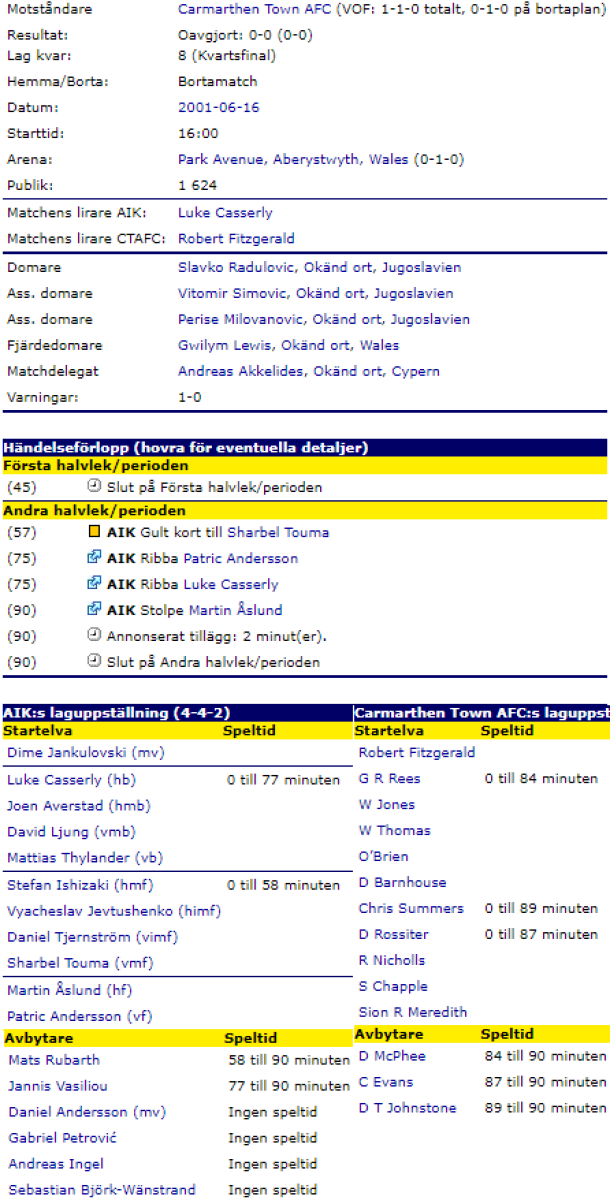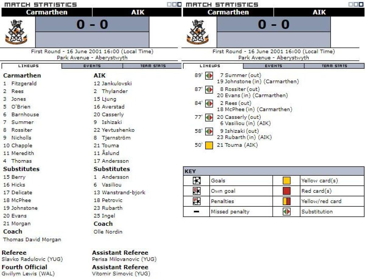 «Кармартен Таун» Кармартен - АИК Стокгольм - 0:0