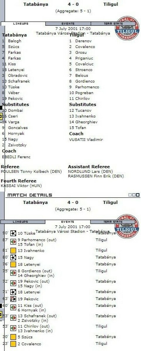 «Ломбард» Татабанья - «Тилигул» Тирасполь - 4:0