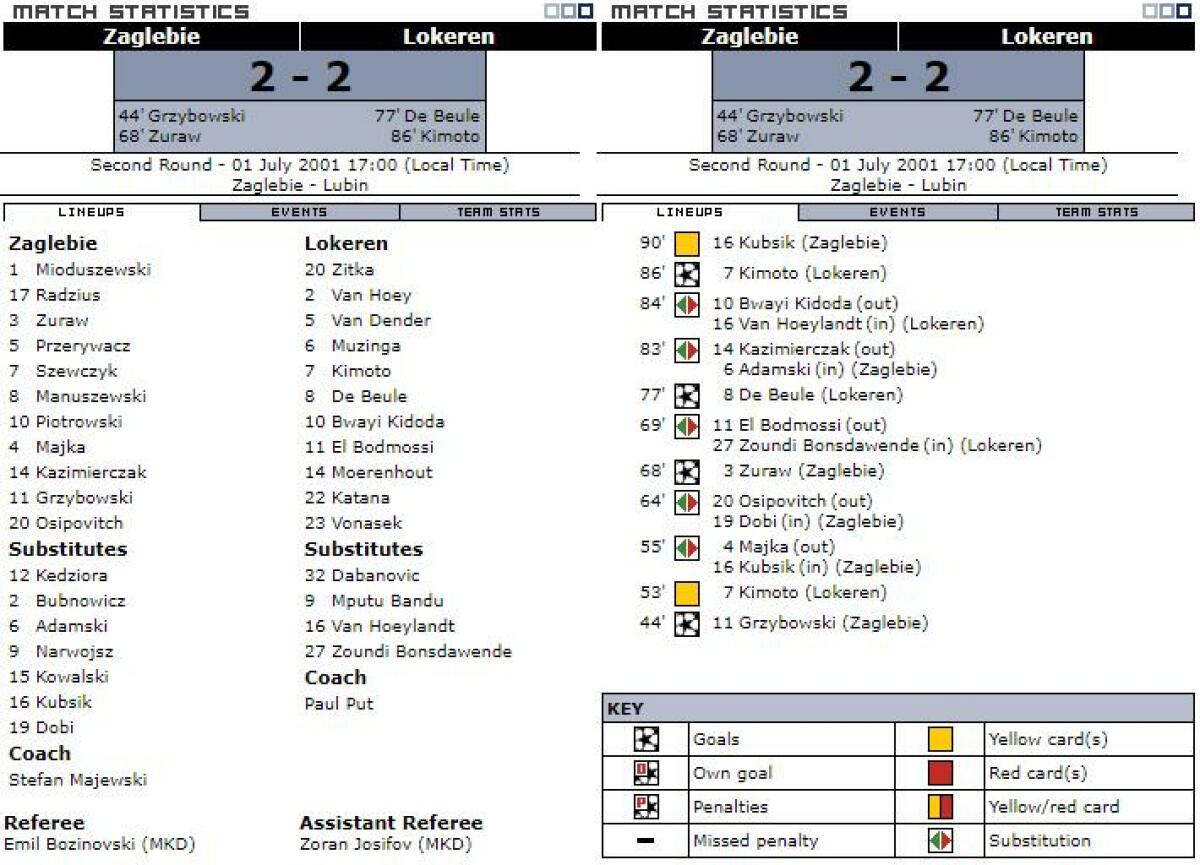 «Заглембе» Любин - «Локерен Сан-Николас Ваасланд» Локерен - 2:2