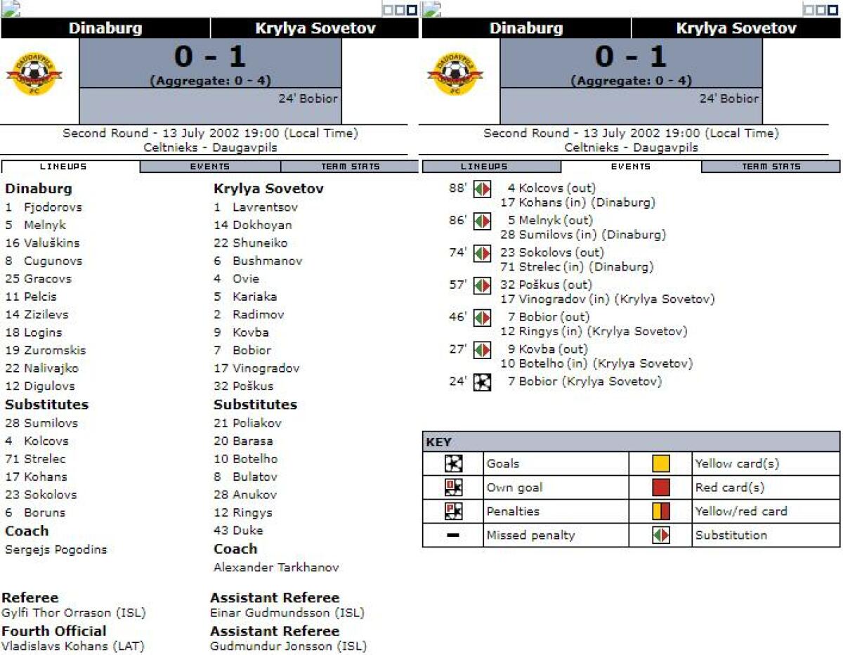 «Динабург» Даугавпилс - «Крылья Советов» Самара - 0:1