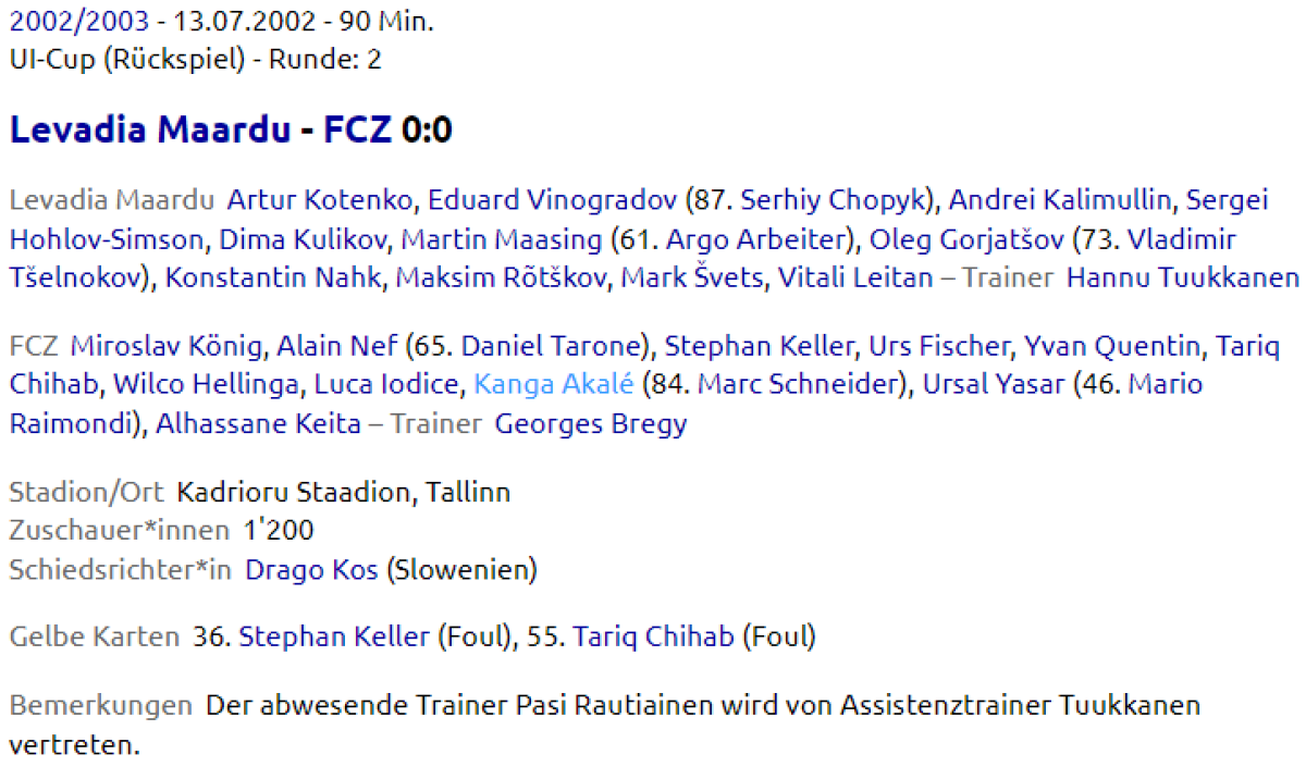 «Левадия» Маарду - «Цюрих» Цюрих - 0:0