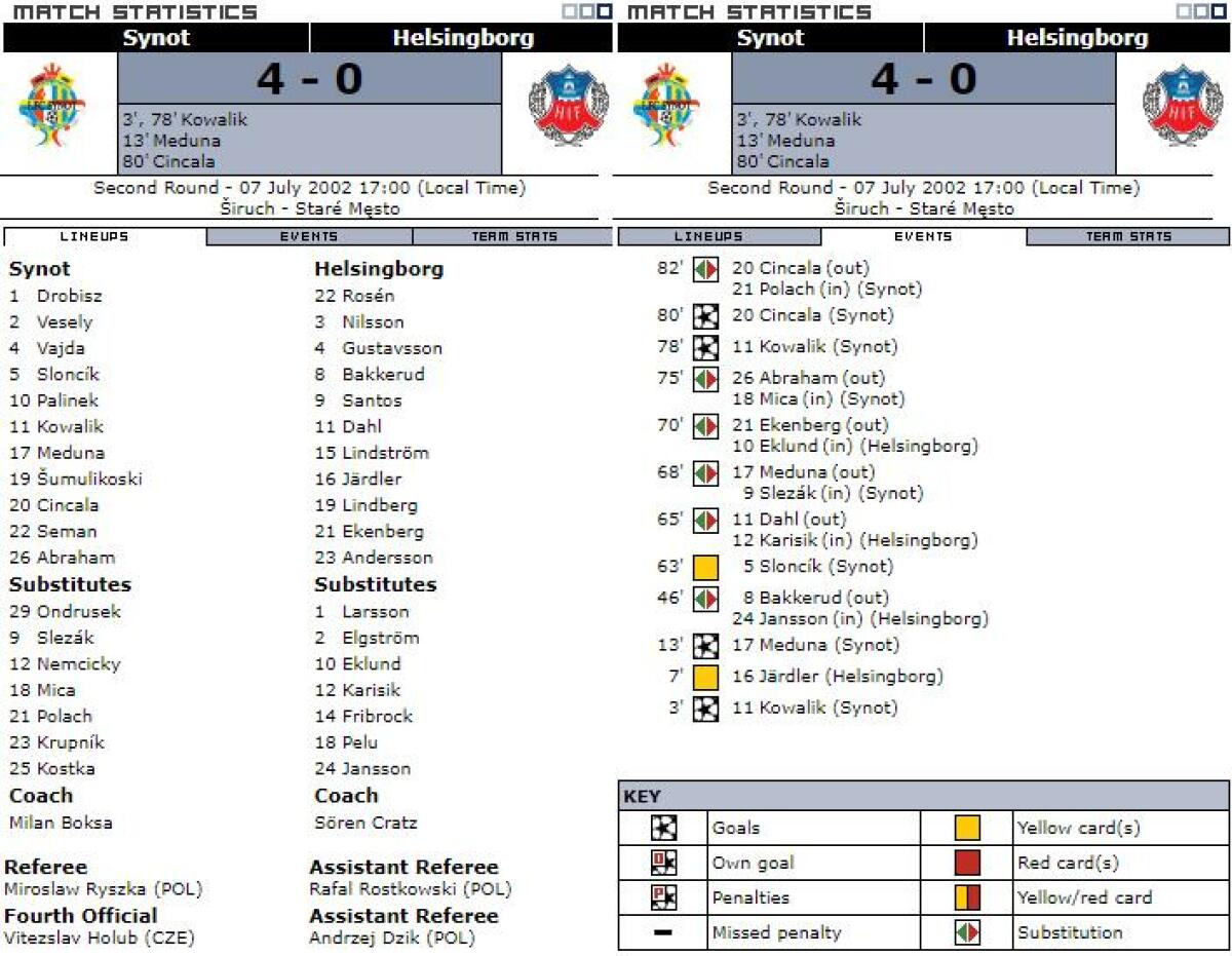 «1. ФК Синот» Старе-Место - «Хельсингборг» Хельсингборг - 4:0