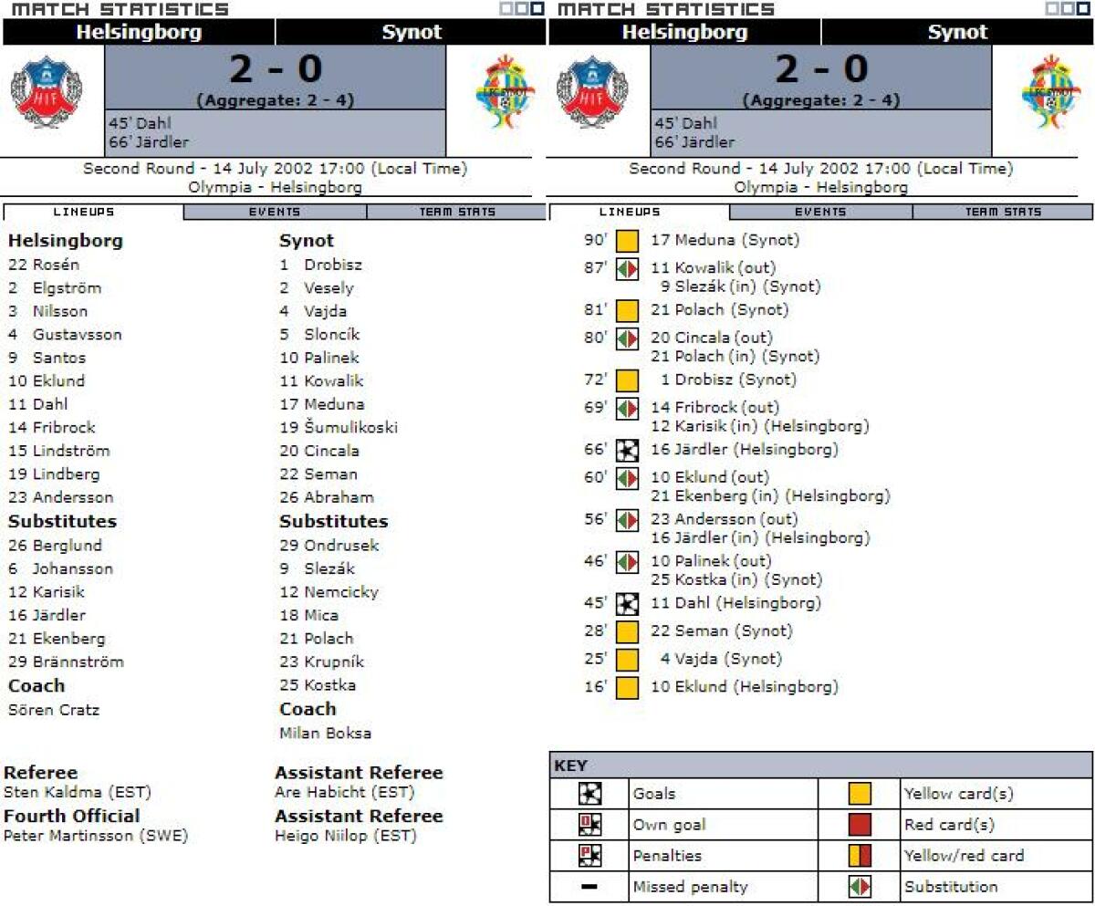 «Хельсингборг» Хельсингборг - «1. ФК Синот» Старе-Место - 2:0