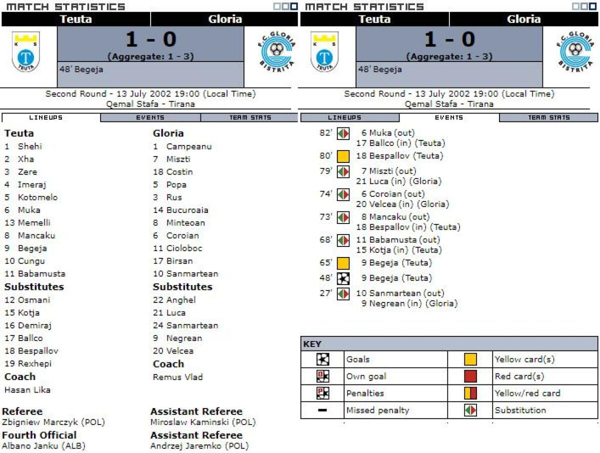 «Теута» Дуррес - «Глория-1922» Бистрица - 1:0