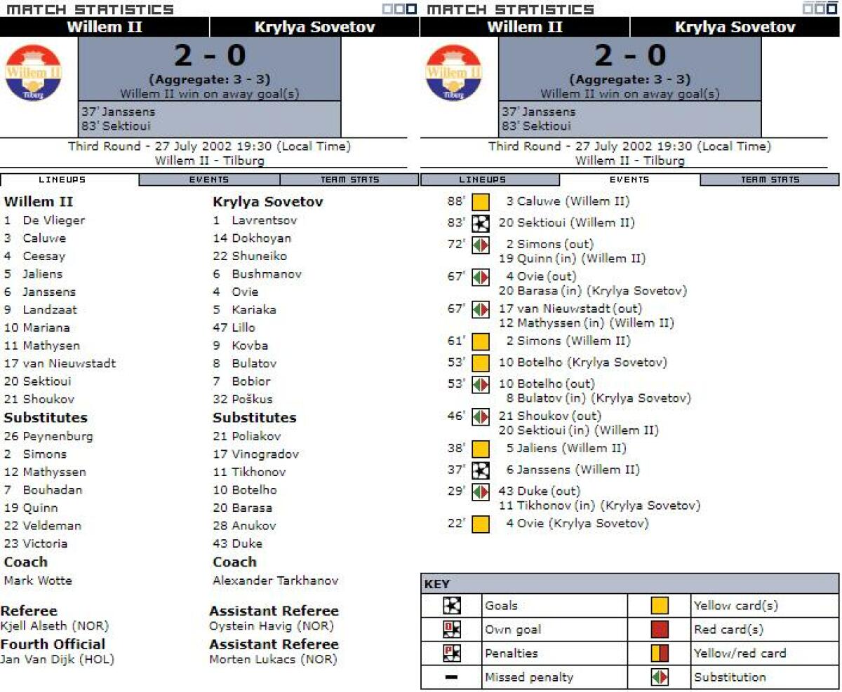 «Виллем II» Тилбург - «Крылья Советов» Самара - 2:0